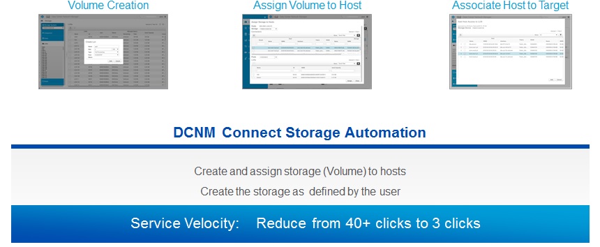 - Reduce Operational cost via simplified management: The latest Data Center Network Manager (DCNM) (release 10.1) extends manageability of SAN/LAN to storage arrays, enabling customers to automate provision of end to end LAN /SAN and storage devices/arrays.