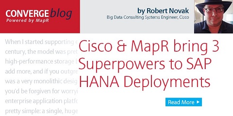 Visit my guest post on the MapR blog for more details, and to register for the webcast. We’ll talk about the unique joint solution between superpowers Cisco, MapR, and SAP, featuring the Cisco UCS 40 Gigabit Ethernet infrastructure. You’ll hear from experts from Cisco IT and MapR on why this design makes sense and how/why Cisco is using it internally. There may even be a mention of toaster pastries.
