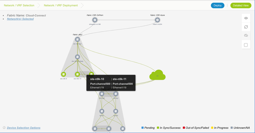 During Network and VRF deployment, users can select multiple switches at the same time, either through the topology view or the tabular view. With DCNM, the save, preview (optional), and deploy continuum works in the same way for overlays as is the case for any other configuration. With the preview option in the Network and VRF workflow, there is relevant overlay configuration for review before the changes are pushed to the respective switches. The complete history of what changes were deployed by whom, when and where are maintained on a per switch, per interface, per network, and per VRF basis.