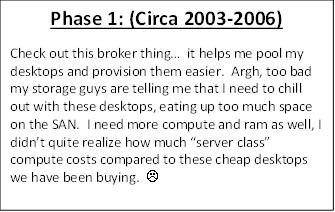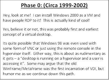 The model in which we used to sell, design and deliver VDI was based on the environment that it was formed around. We are moving beyond the “just get it to work” phase and are getting set to face the next challenge – General purpose GPU users. To set the stage, lets take a look at some of the evolution of VDI (along with our VDI Administrator) and the technology that has fostered its growth.