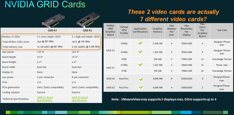- Nvidia has created a Virtualization Specific series for GRID cards that are designed to be shared in VDI environments