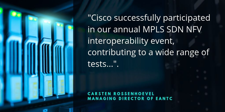 “Cisco successfully participated in our annual MPLS SDN NFV interoperability event, contributing to a wide range of tests in the Segment Routing, EVPN, and SDN test areas. This year, our showcase in Paris focused on 5G readiness of multi-vendor transport networks, and Cisco’s commitment to advanced test cases – specifically, but not limited to SRv6, network slicing, and multi-domain controller orchestration – was much appreciated”