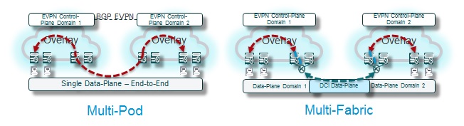 Even in the pre-VXLAN EVPN days, we still managed to build well-structured and hierarchical topologies such as Fat-Tree, Clos, Leaf/Spine. VXLAN overlays flattened this by creating end-to-end encapsulations from leaf to leaf through the Multi-Pod design. There the data plane was shared across pods while keeping some separate overlay control plane instance per pod. Alternative approaches preserved the hierarchy but required introduction of additional Data Center Interconnect (DCI) technology for interconnecting distinct VXLAN overlay domains; resulting in a Multi-Fabric design.