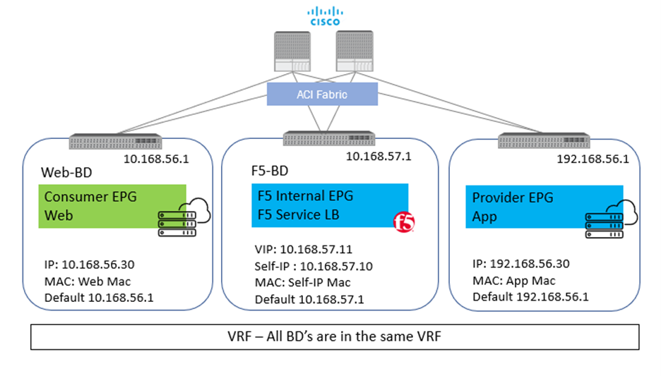 - The server(s) default gateway does not need to point to F5 BIG-IP, but can point to the ACI fabric
