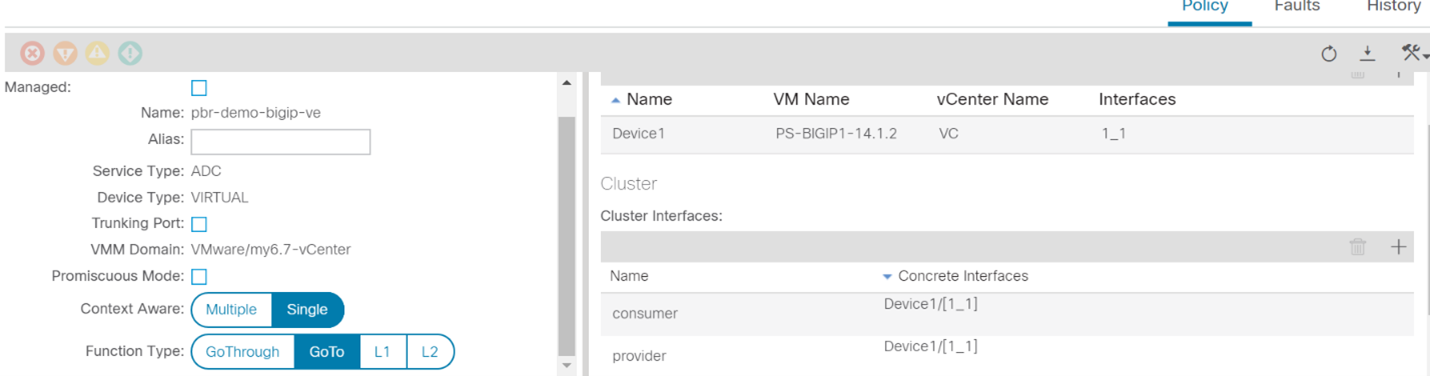 Once the service graph is deployed, it is in applied state and the network path between the consumer, F5 BIG-IP and provider has been successfully setup on the APIC