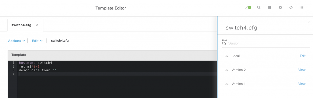 "templateContent": "hostname switch4\nint g2/0/1\ndescr nice four\n"