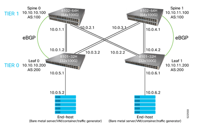 - 4 Cisco 8000 routers that run the SONiC operating system (OS)