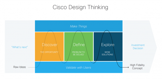 Have you heard the term, “Design Thinking?” Cisco and other forward thinking companies are investing in tools and teams to create Design Thinking frameworks, and spread Design Thinking methods further and faster across their companies. Design Thinking is not just for designers. It’s an approach to problem-solving and innovation that can be employed by any business or function to achieve extraordinary results.