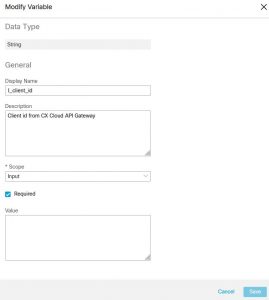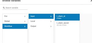 VARIABLES, clickADD VARIABLEand add aSTRINGcalled I_client_id, make it required and make itsSCOPEto be input. Add aSECURE STRINGcalled I_client_secret, make it required and make itsSCOPEto be input.