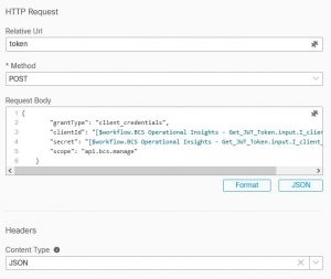 Workflow->input->I_client_idfor the client id field andWorkflow->input->I_client_secretfor the secret. Set the content type to JSON.