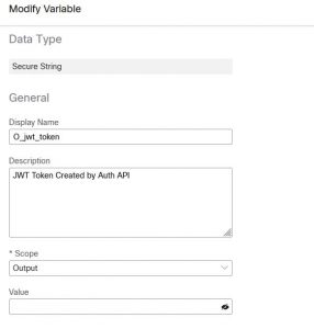 SECURE STRING. Call it O_jwt_token and make itsSCOPEto be output.