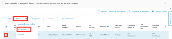 Select the device, then go up to the “Actions” menu and select “provision”. This will begin the provisioning workflow.