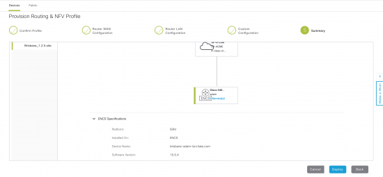 Now to provision the ENCS based on the network profile in the design phase.