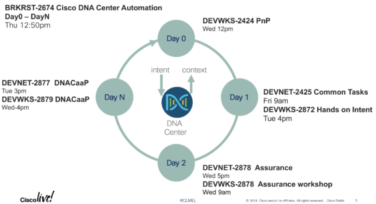 This year, I am taking a wholistic approach to my presentations. I have nine sessions on Cisco DNA Center API, and I have structured them around the lifecycle of network operations: