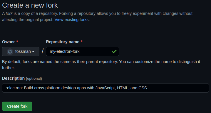 As you save the forked repository to your account, you’ll be prompted to provide a name for it.
