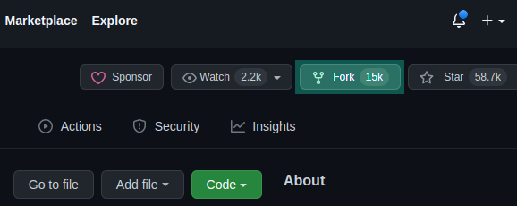 In GitHub, you can simply use the “Fork” button to start this. You’ll find it in the upper-right part of your screen: