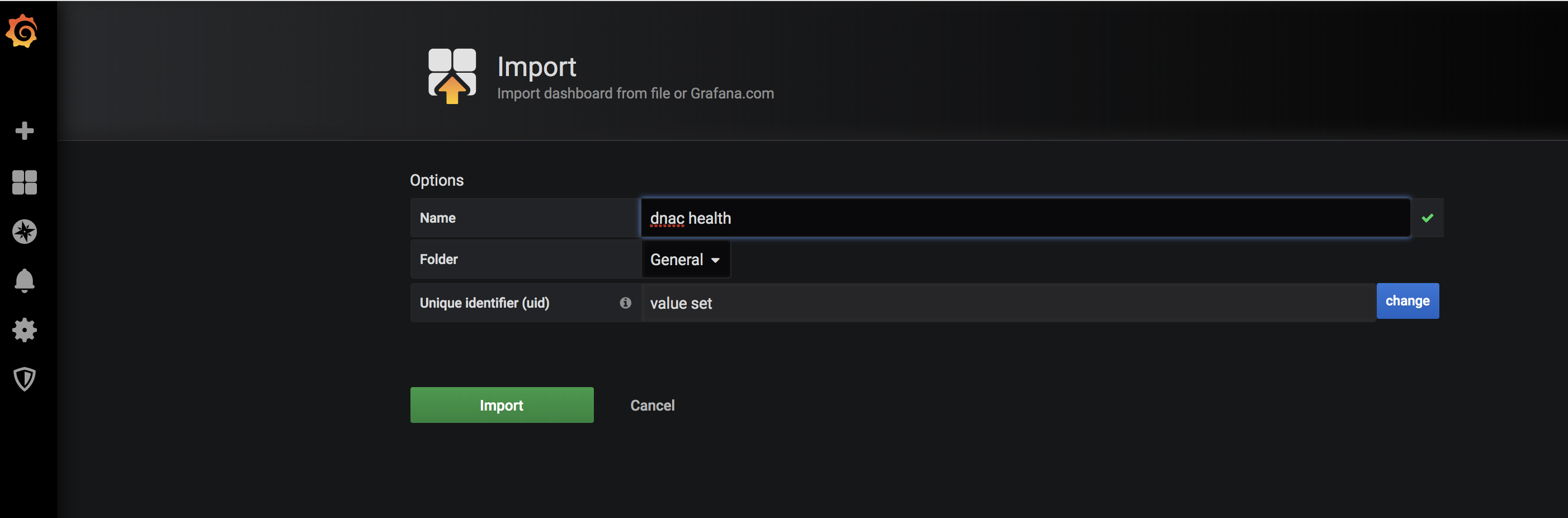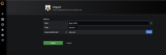 The final step is to import a json definition of the DNAC dashboard into gafana.