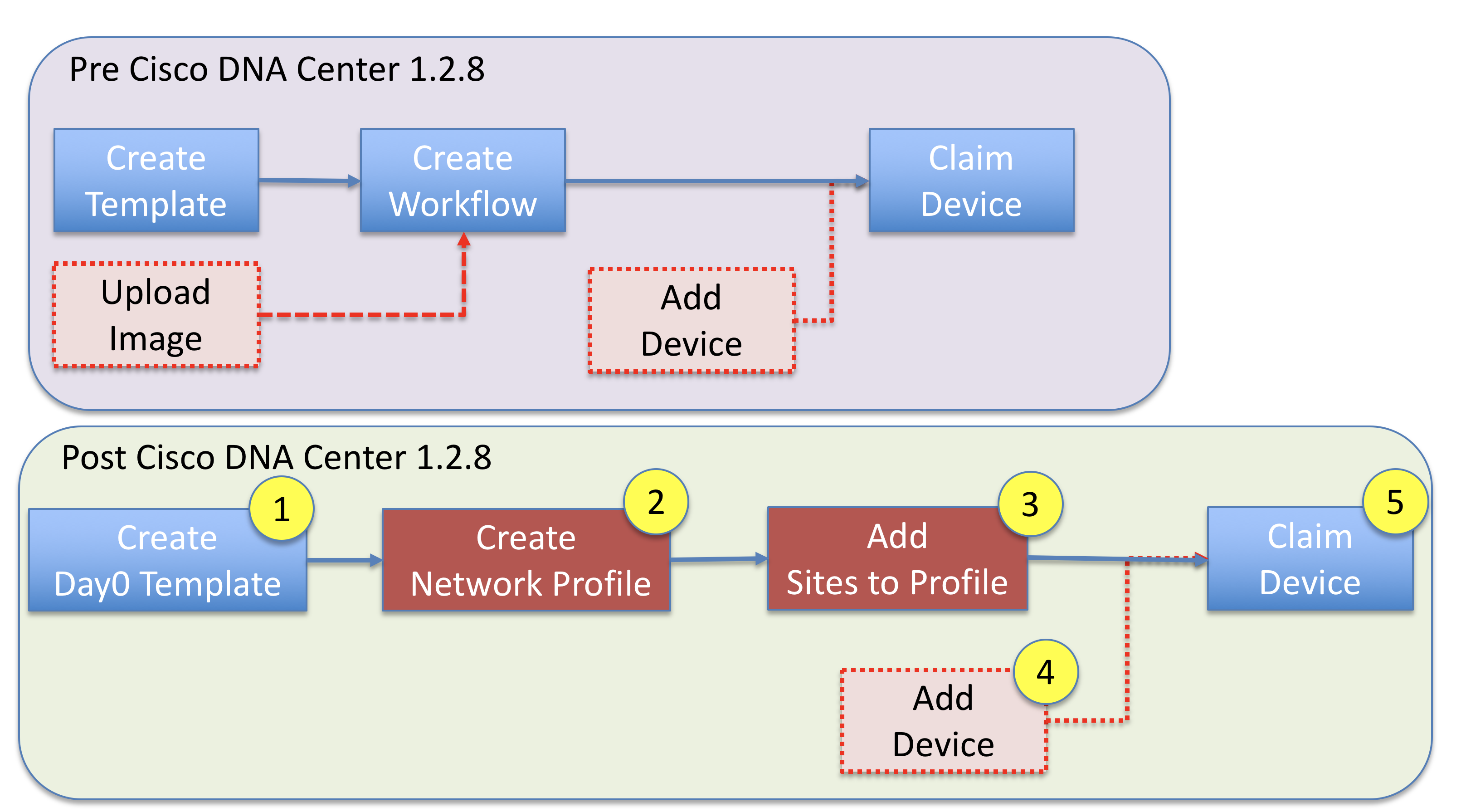 In the past, PnP was a standalone application within Cisco DNA Center, with a dedicated workflow for onboarding devices. Now, in the most recent 1.2.8 release, PnP has been integrated into the main provisioning screen. This blog documents this change.