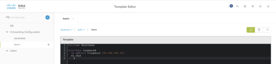 - The template does not need to include device credentials or site specific settings, as these are added automatically as part of the provisioning process.