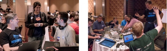 Following a brief kickoff presentation covering the agenda and other housekeeping items, participants self-organized into teams and got to work. The nature of the hackathon is such that it is not uncommon for participants to work on multiple projects and for teams to work together on newly discovered areas of common interest. This level of cooperation and knowledge transfer is another noteworthy benefit of the hackathon. The increased awareness and relationships established during the course of the weekend are arguably more important than the code that gets written.