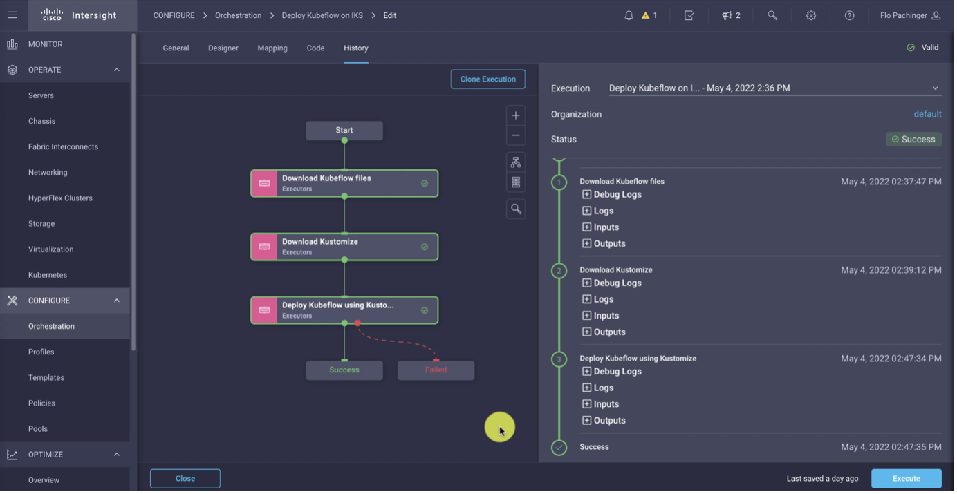 We will use the Intersight Kubernetes Service (IKS) to build the Kubernetes cluster and the Intersight Cloud Orchestrator (ICO) to write a deployment workflow for Kubeflow.