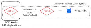 MCP clients exchange messages with MCP servers using JSON-RPC 2.0 (as the wire format). For local data sources, MCP uses JSON-RPC over stdio (Standard Input/Output) as the transport. Figure 3., illustrates how an MCP-C connects to a local MCP-S for file or DB access using stdio. The MCP-S sends JSON-RPC messages to its standard output / stdout and reads from the standard input / stdin.