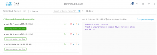 Command Runner allows exec commands to be run on devices across the network. This API is commonly used in the “Run IT” feature of assurance.