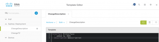 Template programmer API lets you define and apply velocity templates to change the configuration of network devices. Templates support variables, versioning, validation and testing sets.