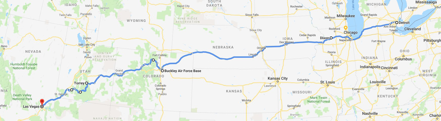 So 4 full days of riding each way (5 for me each way as I live in Michigan). With the route we’re taking we’ll get close to 5,000 miles in. We’ll go through 11 states, at least 6 National Parks, several 10,000ft mountain passes and experience temperature ranges of 50+ degrees some days.