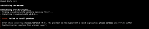 An expected output, without a valid PGP public key in the registry.