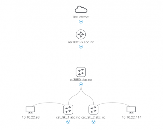 python get_dnac_devices.py +-------------------+----------------+---------------+------------------+-----------------------+-------------+-------------+ | Hostname | Platform Id | Software Type | Software Version | Up Time | Serial Nu | MGMT IP | +-------------------+----------------+---------------+------------------+-----------------------+-------------+-------------+ | asr1001-x.abc.inc | ASR1001-X | IOS-XE | 16.6.1 | 180 days, 19:21:43.97 | FXS1932Q1SE | 10.10.22.74 | | cat_9k_1.abc.inc | C9300-24UX | IOS-XE | 16.6.1 | 180 days, 20:45:36.37 | FCW2136L0AK | 10.10.22.66 | | cat_9k_2.abc.inc | C9300-24UX | IOS-XE | 16.6.1 | 180 days, 20:40:03.91 | FCW2140L039 | 10.10.22.70 | | cs3850.abc.inc | WS-C3850-48U-E | IOS-XE | 16.6.2s | 177 days, 7:33:46.98 | FOC1833X0AR | 10.10.22.69 | +-------------------+----------------+---------------+------------------+-----------------------+-------------+-------------+