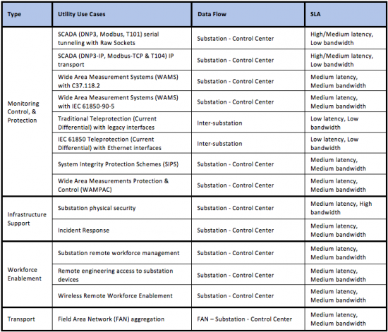 What’s called for is a converged WAN infrastructure capable of supporting multiple categories of common use cases reliably delivering mission critical data from field area networks to control applications across a range of latency and bandwidth requirements. Table 1 outlines common utility use cases and their associated characteristics: