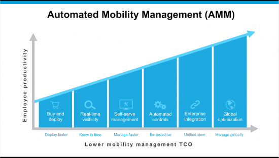 The key is Automated Mobility Management (AMM). Automation gives you the power to transform from cumbersome manual and reactive processes to accelerated efficiency and proactive control to avoid overages. It’s a whole new way of thinking about mobility management that can have a measurable impact on your bottom line.