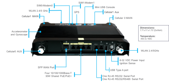 Excellent product. The Cisco’s Dual LTE IR 829 includes 3 key points: Flexible communications options: (1) SFP WAN Port, (4) LAN PoE / PoE + ports, (1) RJ-45 RS232 Serial Port, (1) RJ-45 RS232 / RS485 Serial Port, 1 Cellular Aux Port, 1 WLAN 2.4 / 5 Ghz port to offer WAN, LAN, WLAN and Cellular connectivity options. Among the main services you can offer are: Wi-Fi services, Location aware services driven with GPS information and real-time services.