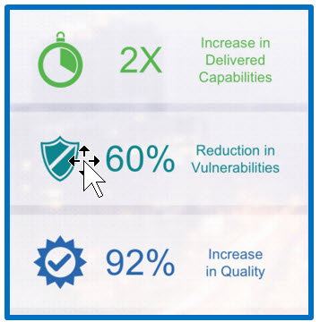 We doubled our delivered capabilities and increased quality by 92 percent. Here’s the sparkler. Vulnerabilities simultaneously shrunk by 60 percent.