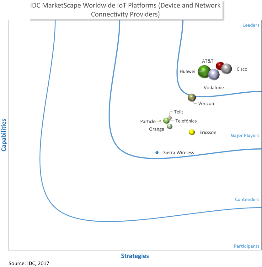SOURCE: “IDC MarketScape: Worldwide IoT Platforms (Device and Network Connectivity Providers) 2018 Vendor Assessment”, by Carrie MacGillivray and Stacey Crook, January 2018 IDC #US43434417