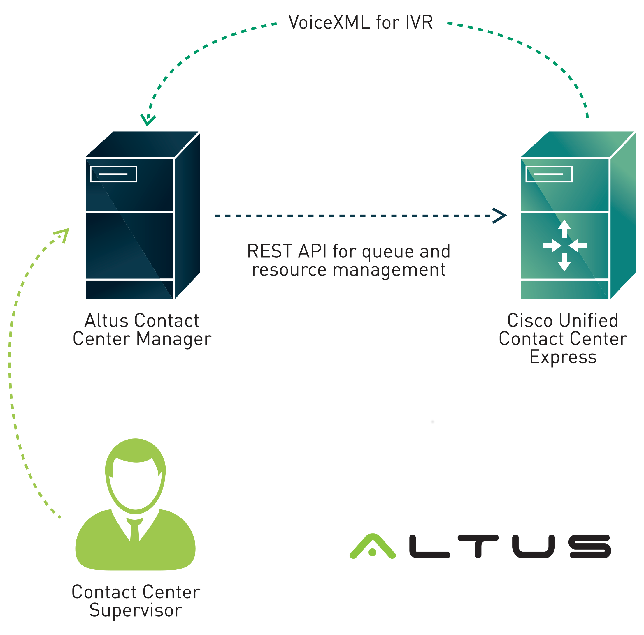 Jose’s organization, Altus, developed Altus Contact Center Manager (ACCM), a software solution that uses APIs to integrate UCCX and provide an easy-to-use interface that allows the end user to configure it.