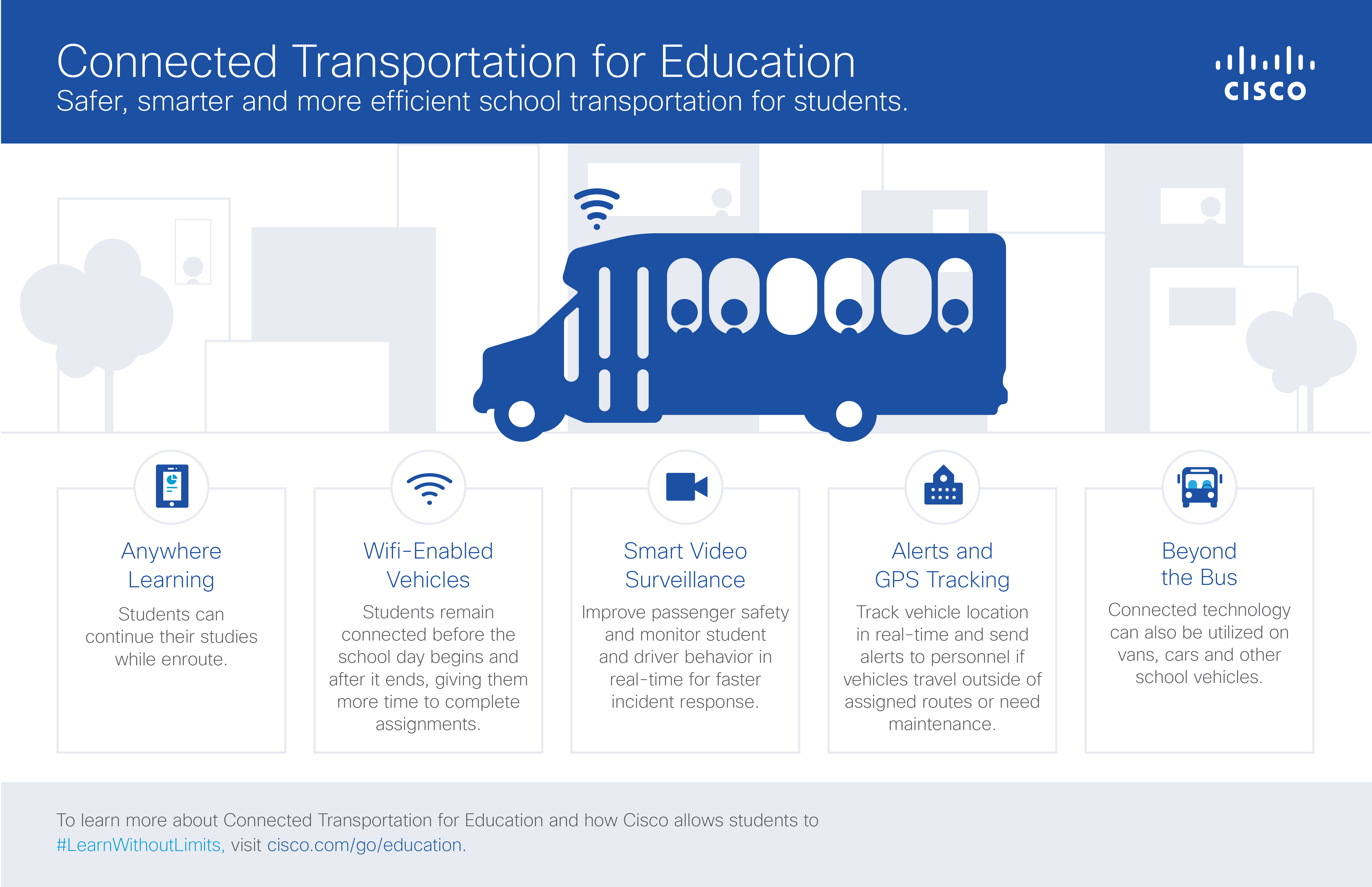 What if students could stay connected online even after they’ve left school? What if they could continue to work on and complete assignments while en-route? What if administrators could receive real-time alerts about the status of the vehicle transporting their students, from the maintenance needed to whether the driver is operating safely?