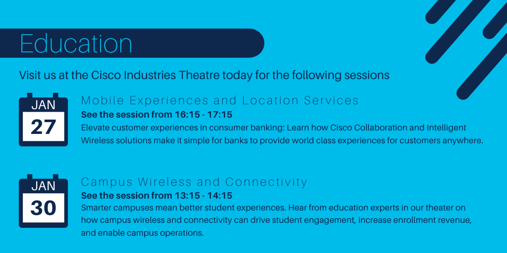 Join us for conversations on education solutions to challenges like this and more at the Industries Theatre in the World of Solutions at Cisco Live Barcelona.