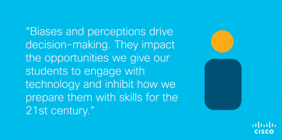Questions we need to ask ourselves: When we work with students who are low income, do we see their lack of resources as a deficit and their families unable to provide for them? When we work with diverse ethnicities, how do subconscious biases show up in our expectation of student learning and behavior? How do our perceptions of different student groups get in the way of serving our students equitably? Are our assumptions of their use of devices congruent with our biases?