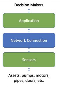 The remainder of this article we’ll talk about this electronic system as the connected condition monitoring system. First, this system is connected. It is connected to whoever needs the information. More on this a bit later. The other part of the system is the condition monitoring aspect which includes the sensors and the application. On the right you can see how these 3 parts work together to move information from assets to the decision makers.