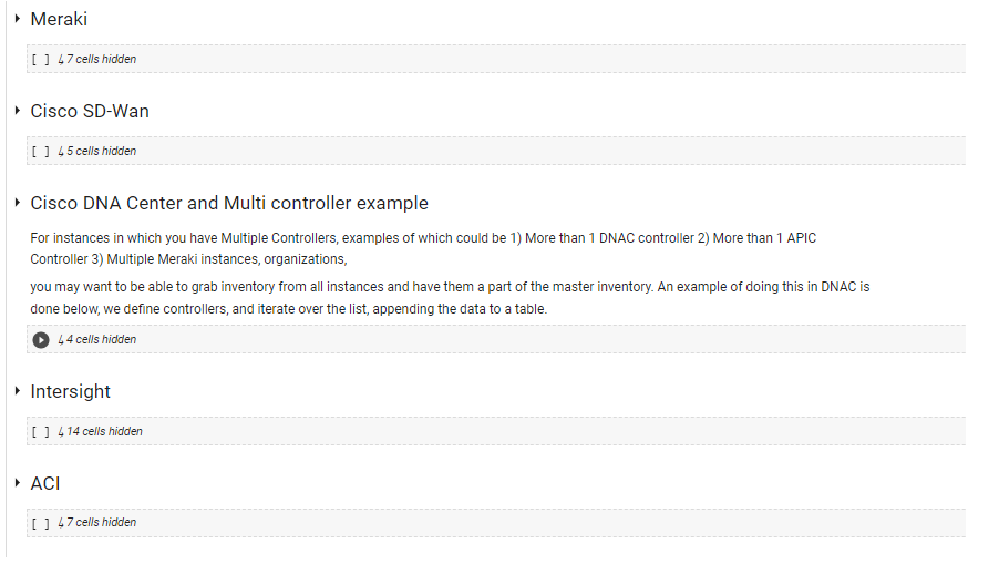 - A functional code example of how existing Cisco controller solutions can be pulled together at the API level to create a framework (from which other vendors can be included), to be able to ensure your knowledge of your span of control is up to date and can be assessed.