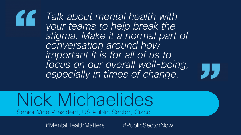 Cisco and our leaders in public sector are changing the conversation about mental health within our company. It’s okay to not be okay. Let’s stop the stigma today.