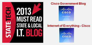 The Cisco Government Blog and the Cisco Internet of Everything (IoE) Blog were both named to StateTech Magazine’s “Top 50 Must-Read State and Local Government IT Blogs.” This is a crowd-sourced list, where blogs were submitted and voted on, with the most useful and insightful blog sites for state and local government IT leaders making the top 50. So for those of you who voted for our blogs, thank you!