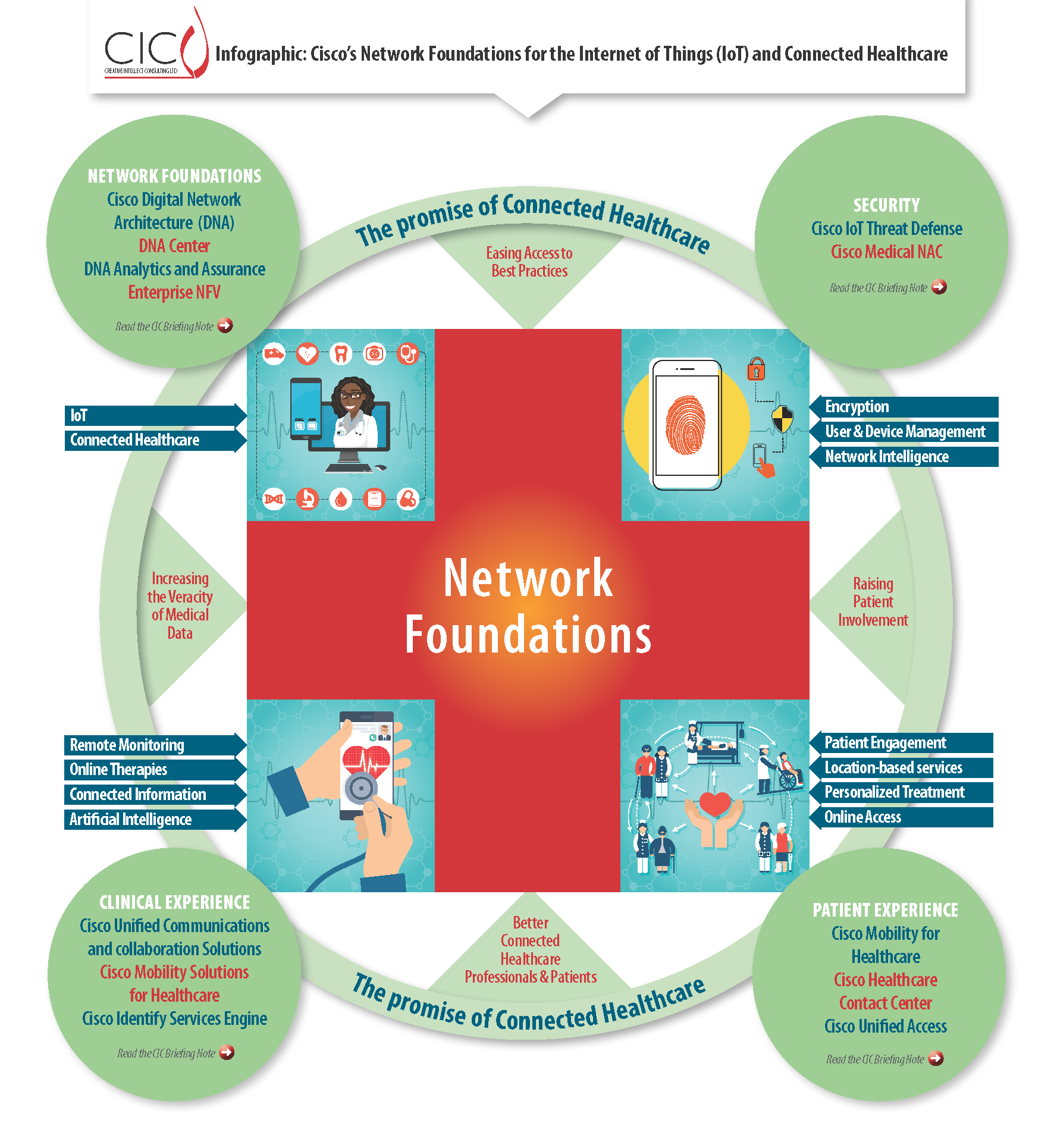 Check out the infographic below to learn how the network foundation, the key ingredient in IoT success, impacts security and the experiences of clinicians and patients: