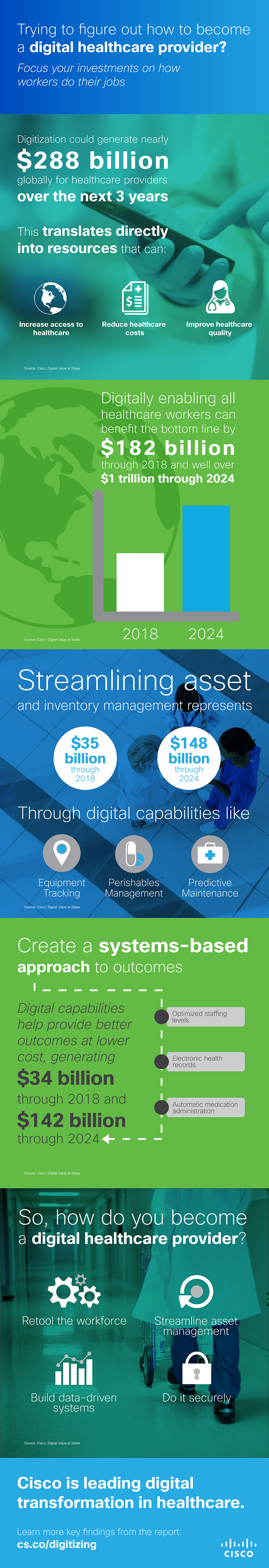 In our report on Connected Futures, we shared the latest research on just that – the economic analysis of the Digital Value at Stake. The study shows that the biggest impact comes from digitizing the ways clinicians, healthcare workers, and administrators do their jobs.