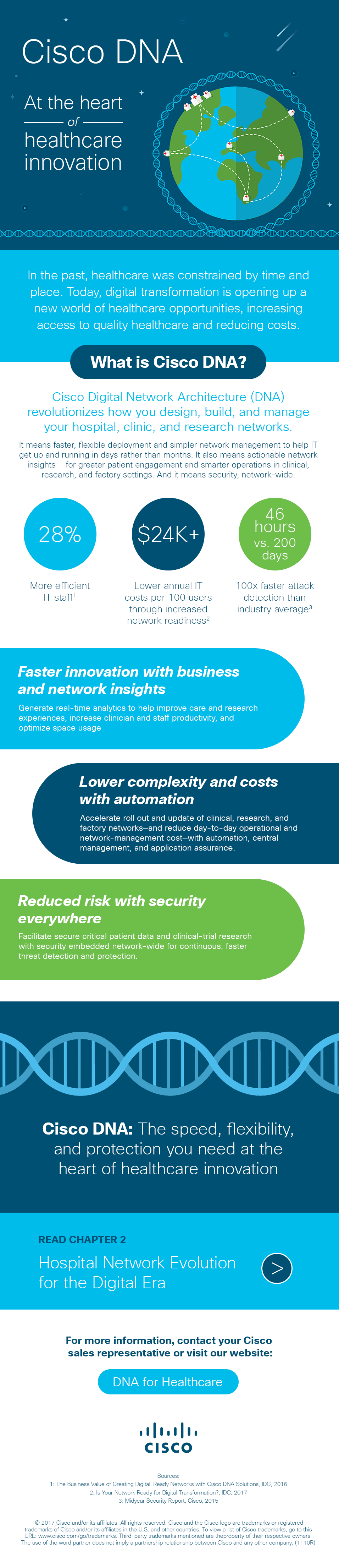 Check out the infographic below to learn more about how Cisco DNA can drive healthcare innovation.