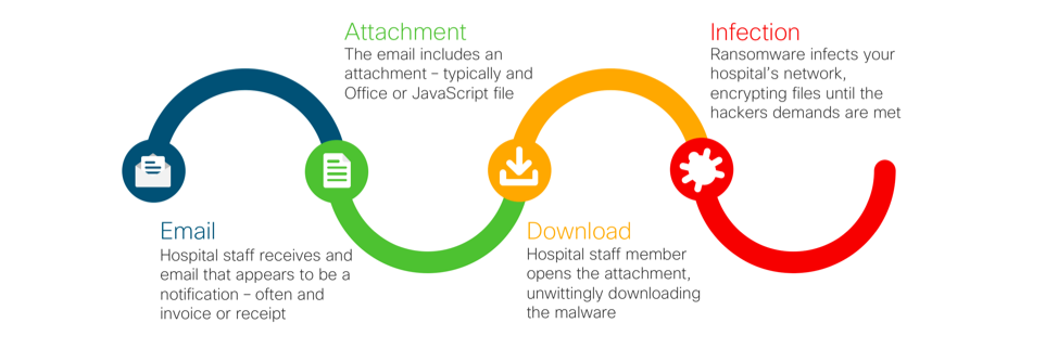 What used to be the stuff of science fiction is now real. Hackers might use an unprotected infusion pump on the network as a gateway to your hospital’s data. A staff member might unknowingly download a malicious PDF attachment from an email. Or perhaps a virus has been lurking undetected in your network for some time.