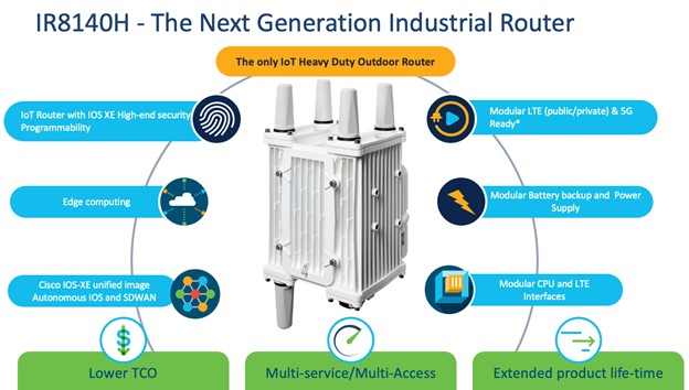 Electric utilities and other industrial customers were able to build a highly secure, reliable, and scalable communication infrastructure on top of their electric grid and other networks. Needless to say, these products are certified to meet harsh environmental standards. They support a variety of communications interfaces, such as Ethernet, serial, cellular, radio frequency (RF) mesh and run Cisco IOS Software. And these routers provide secure connections back to your operations center with ease.