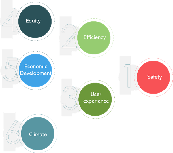 Fortunately, we are starting to understand that defining safety as a primary objective not only enables us to improve the safety situation, but also helps us to address the other objectives simultaneously, as illustrated in the figure below.